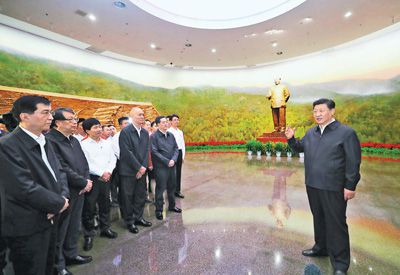 参观结束时,习近平在纪念馆序厅发表了重要讲话。他表示,1949年3月23日,中共中央和毛泽东同志离开西柏坡前往北平,25日进驻北京香山,这里成为党中央所在地。在这里,毛泽东、朱德同志发布向全国进军的命令,吹响了“打过长江去,解放全中国”的伟大号角,中国人民解放军以摧枯拉朽之势向全国各地胜利大进军,彻底结束了国民党在大陆的统治。在这里,毛泽东同志发表了《论人民民主专政》,为新中国的建立奠定理论基础和政策基础。在这里,中共中央同各民主党派、各界人士共同筹备中国人民政治协商会议,制定通过了起到临时宪法作用的《中国人民政治协商会议共同纲领》,确定了新中国的国体和政体,制定了一系列基本政策,描绘了建立建设新中国的宏伟蓝图。