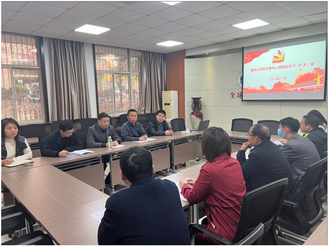 11月27日,国际法学院党委理论学习中心组(扩大)召开学习会议。学院党委理论学习中心组全体成员、各党支部书记、教研室主任、科级干部及学工干部参加学习。学院党委书记李立主持会议。