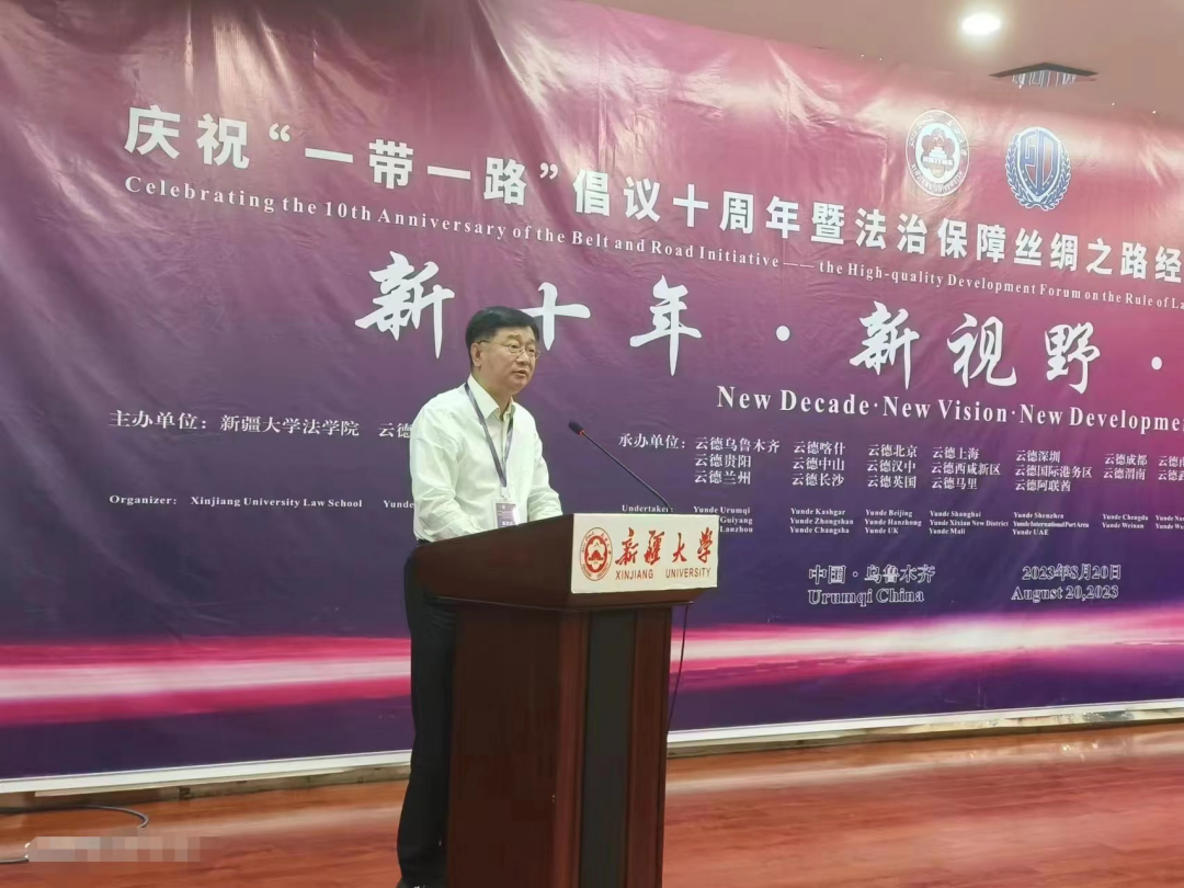 8月20日,庆祝“一带一路”倡议十周年暨法治保障丝绸之路经济带建设高质量发展论坛在新疆大学成功举办。范九利出席会议并致辞。会前,范九利一行与新疆大学党委副书记、校长姚强座谈交流,到新疆大学法学院走访调研。会议期间,与陕西省人民政府驻新疆办事处主任沙玉继,兵团司法局党委委员、副局长、兵团律师行业党委书记韩景峰等进行深入沟通。会上,ac米兰姬亚平教授主持题为“‘一带一路’高质量发展主旋律中的法律音符”的圆桌对话。