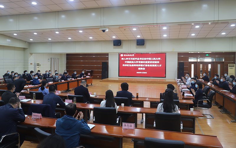 4月29日下午,学校召开“深入学习习近平总书记在中国人民大学、中国政法大学考察时重要讲话精神 传承红色基因培养德才兼备高素质人才”座谈会。校领导、校党委委员,校长助理,西安市人民检察院第九检察部主任张艳娟,西安市长安区人民法院执行局副局长纪胜利出席会议。相关职能部门负责人、各二级党组织书记、各学院院长、教师代表、学生代表等参加会议。校党委副书记、校长范九利主持会议。